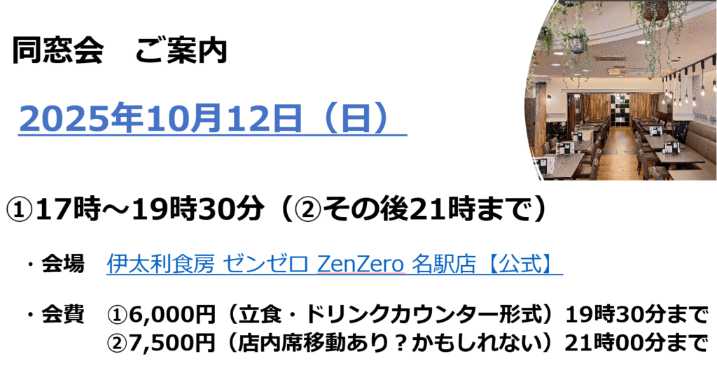 当初の目的である、2025年10月の同窓会がいよいよ迫ってきました!